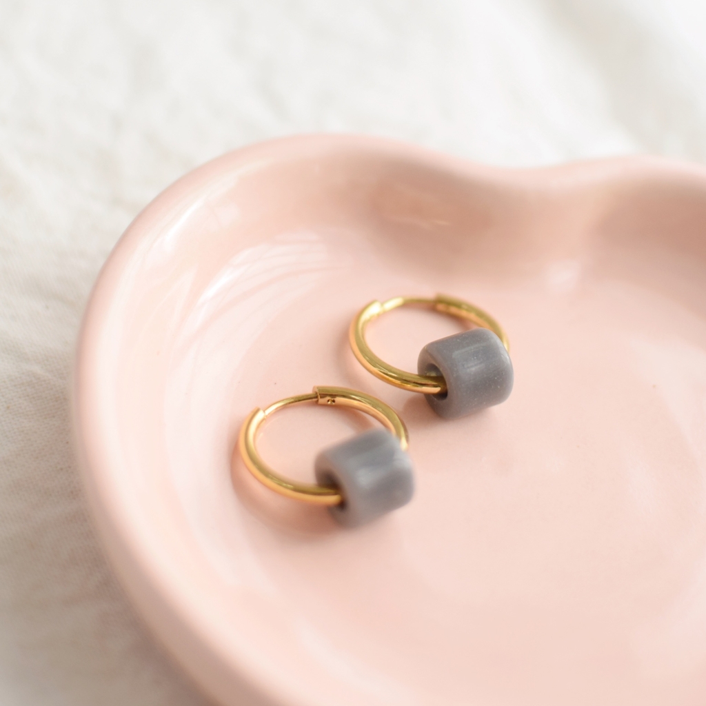 Aros de acero quirúrgico dorado con dijes de vidrio indio.